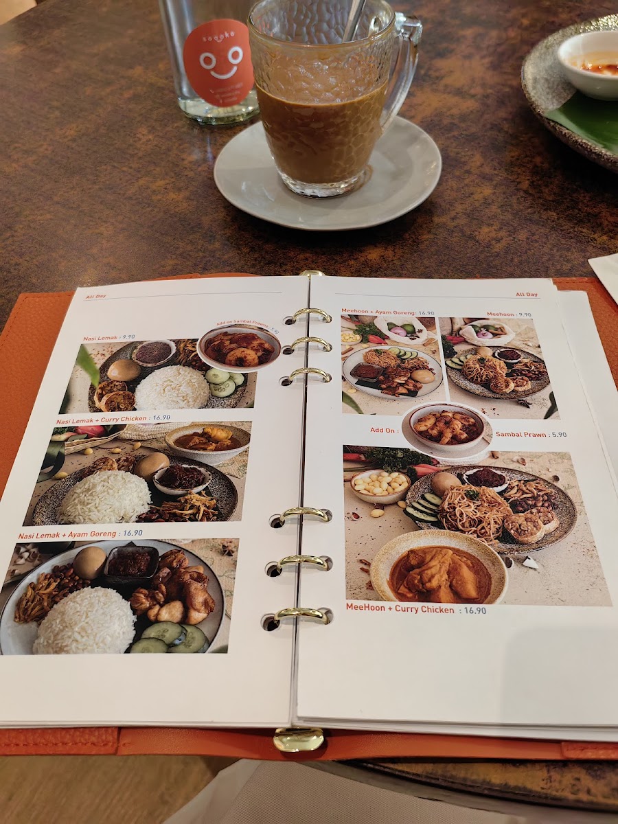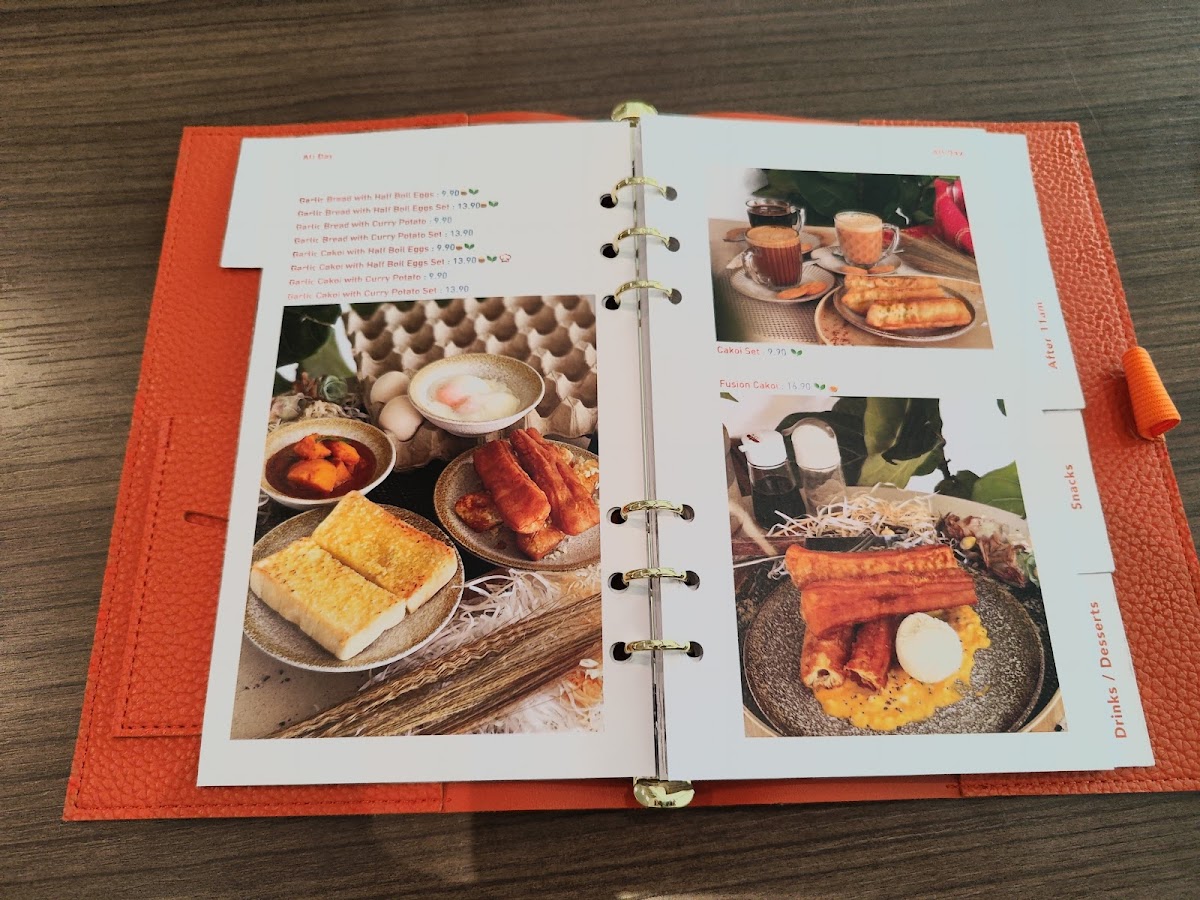 The menu includes a mix of hearty noodle dishes like laksa and duck noodle soup alongside lighter bites such as scrambled eggs and garlic bread cakoi sets. Warm drinks like kopi, teh tarik, and hot chocolate are perfect companions for the laid-back setting, encouraging moments of pause and connection.